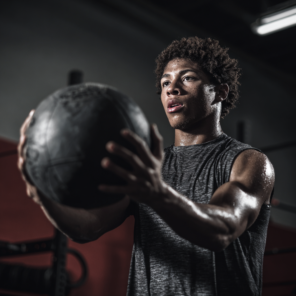 Throwing a football is a rotational movement. You load your back hip, separate your hips and shoulders, and then uncoil that stored energy through your trunk and arm. The med-ball lateral rotational throw directly trains this pattern.